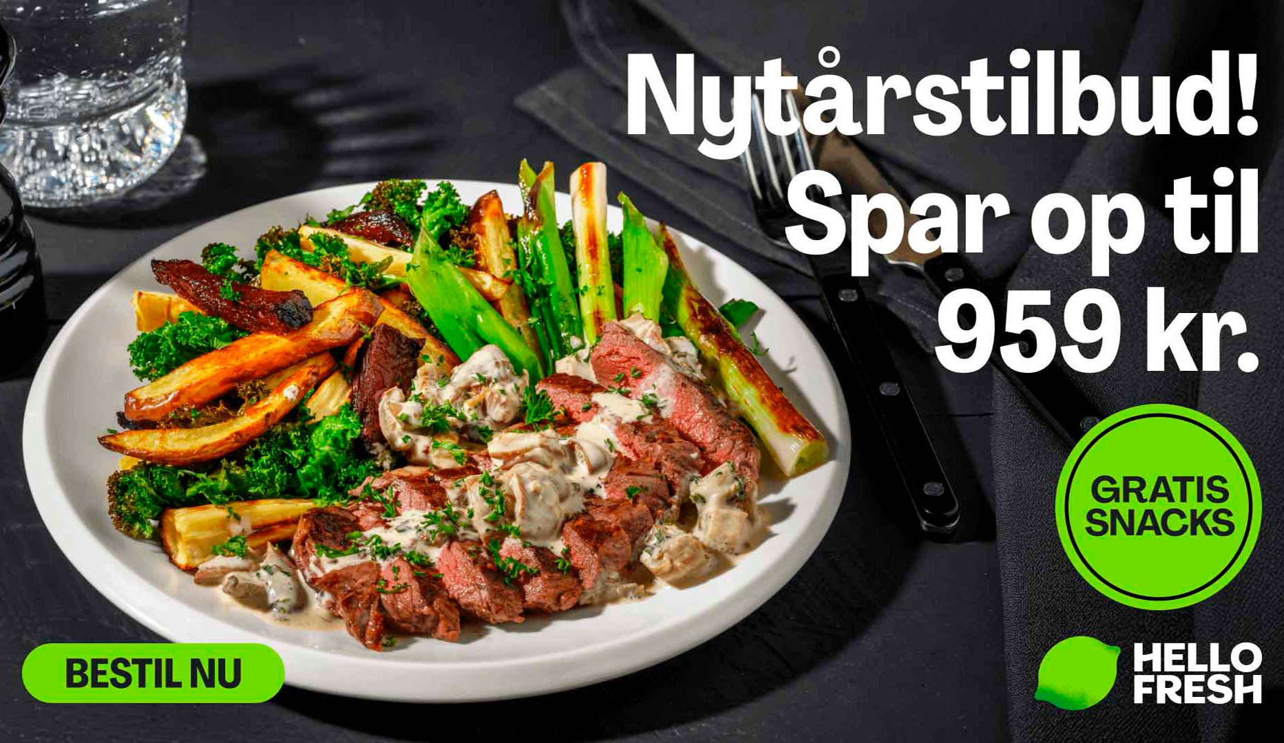 Vilkår; Tilbuddet giver dig en gratis snack med hver måltidskasse, du bestiller indenfor de første 3 måneder, så længe du forbliver kunde hos HelloFresh og ikke opsiger dit abonnement i perioden. Tilbuddet giver dig også rabat på dine første 5 måltidskasser. Rabatten kan ikke bruges på Specialopskrifter, tillægsprodukter og levering. Du kan se rabatten per kasse, når du aktiverer rabatkoden. Hvis ikke der bestilles 5 kasser inden 12 uger, går den resterende del af rabatten tabt. Tilbuddet gælder kun nye kunder, og kunder, som har haft et inaktivt abonnement i mindst 12 måneder. Rabatkoden udløber d. 31/12/2025 kl. 21.59. Dine gratis snacks tilføjes ikke automatisk din ordre, men skal aktivt tilvælges. Mængden af snacks vises ved bestilling og afhænger ikke af størrelsen på din måltidskasse. Snacks leveres ud fra tilgængelighed og tager ikke hensyn til kostpræferencer. Abonnementet kan til enhver tid sættes på pause eller opsiges. Se alle vilkår på: hellofresh.dk/pages/tilbehor