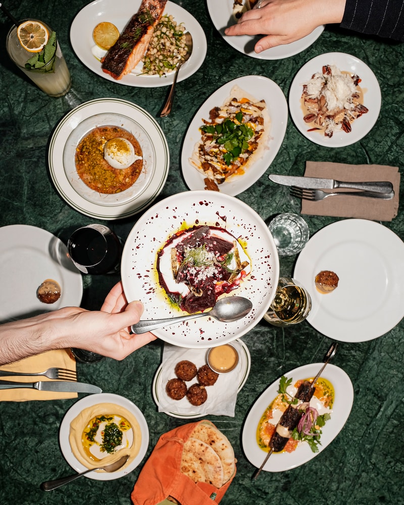 Menuen starter med en række håndplukkede mezze fra køkkenchefen – små, farverige retter, der skal deles og nydes i fællesskab. Det ku' være Hayas berømte popcorn-falafler (tro os, dem vil I ikke gå glip af) eller deres yafo kyllingespyd, serveret med yoghurtdressing og grillet løg. Derefter følger hovedretter, som emmer af Tel Avivs gadekøkkener og varme krydderier - som deres populære Wagyu Kebab, som er håndlavet og serveret med røget aubergine- og tomatsauce. Til sidst rundes det hele af med et sødt udvalg af NENI’s desserter, som for eksempel deres dessert Sesame, en specialitet med hjemmelavet moscovado-is og karamelliserede pekannødder.