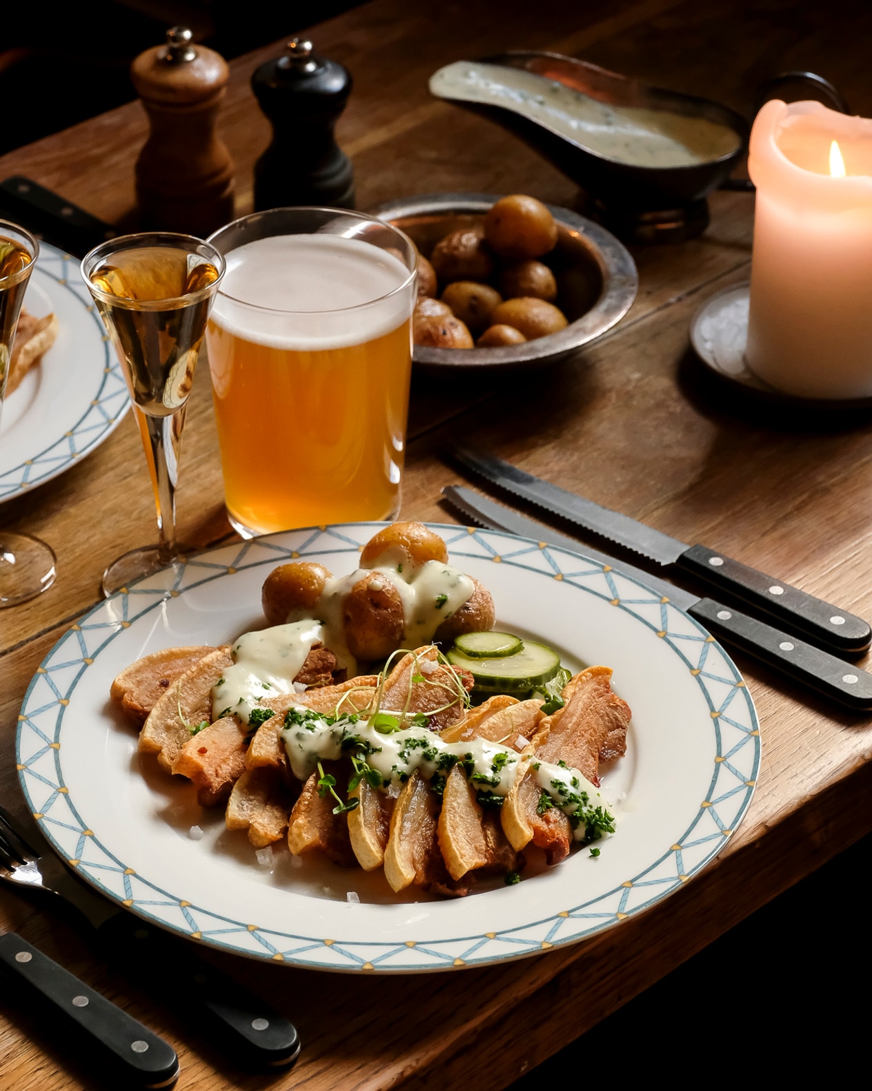 Siden 1983 har kroen serveret dansk mad med ægte krostemning og udsigt til kanalen. Stegt flæsk med persillesovs og kartofler er lavet fra bunden, uden genveje – med fokus på sprødhed, balance og det gode, enkle køkken. En tallerken, der taler til både minder og smagsløg.