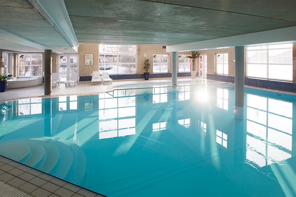 Indendørs pool (28 grader) og kold udendørs pool (lufttemperaturen)