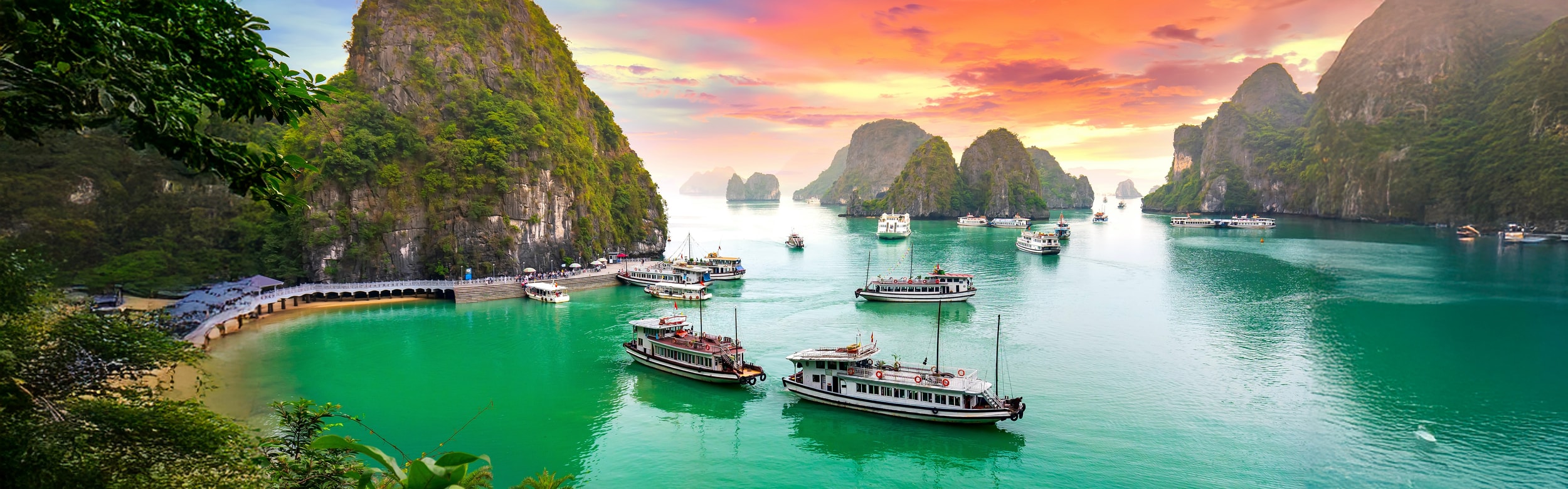 Rejsen starter i Hanoi, hvor gamle franske boulevarder og kolonitidsbygninger står side om side med travle gader fulde af scootere, gadekøkkener og markeder. Her mærkes Vietnams puls fra første dag. Et af højdepunkterne er det tre dage lange krydstogt i Halong Bay – et af verdens smukkeste naturvidundere. Ombord venter helpension, hyggelige kahytter og et program fyldt med små oplevelser: sejlture i kajak, besøg i grotter og afslapning på dækket med udsigt til kalkstensøer, der rejser sig dramatisk af havet.