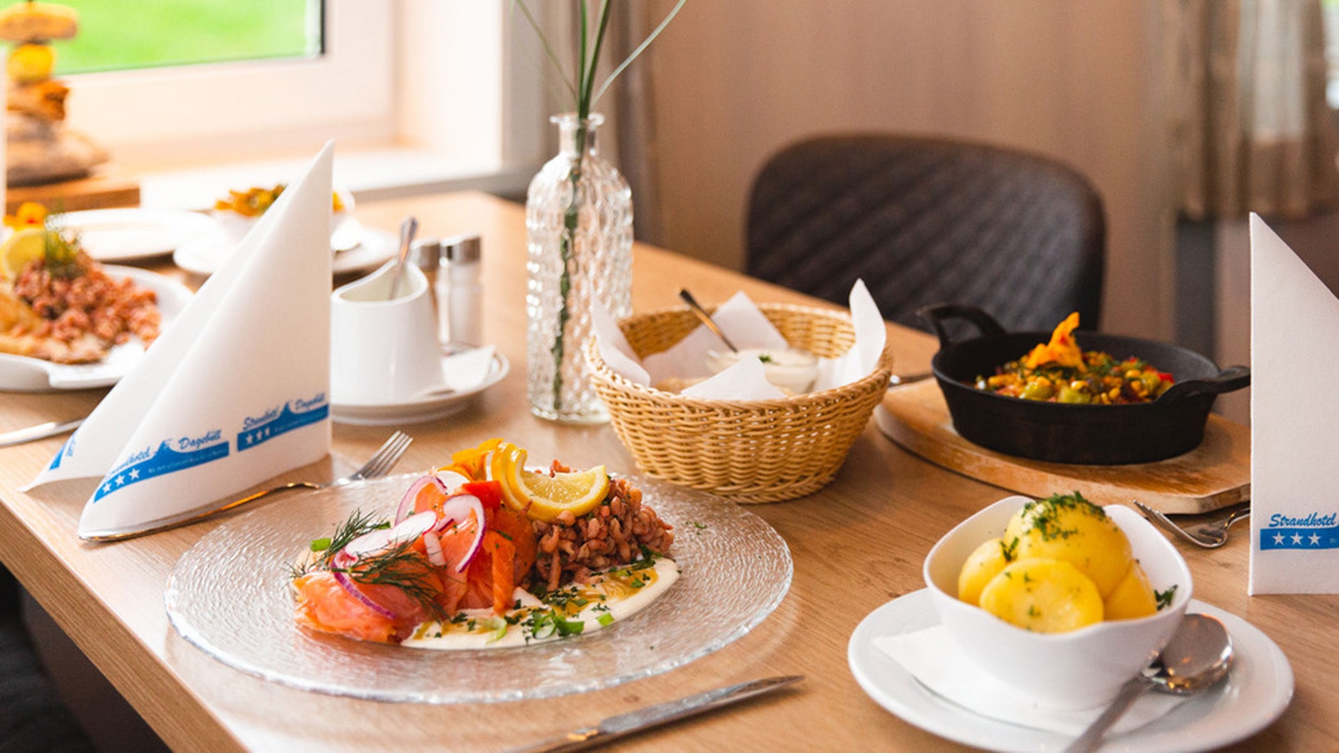 På hotellet kan I nyde den inkluderede 4-retters middag, og den rummelige terrasse indbyder til afslapning i den friske havluft. Ønsker man ekstra forkælelse kan I benytte hotellets wellness med sauna og spabad. Der er også mulighed for at tilkøbe adgang til wellnessafdelingen ”Aqua Vitalis” på nabohotellet for en merpris på 22€ pr. person. Med rolige omgivelser, komfortable faciliteter og nærheden til både hav, natur og den danske grænse er Strandhotel Dagebüll det perfekte sted at komme helt ned i gear og nyde en afslappende pause fra hverdagen.