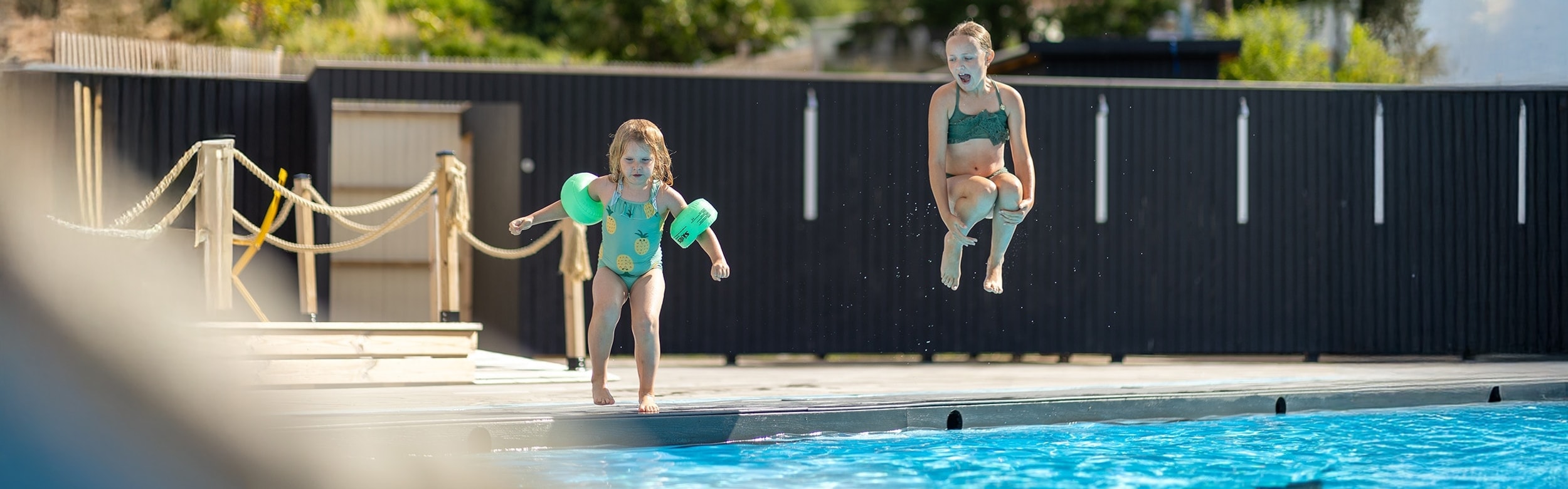 Nyd de solrige dage i den udendørs, opvarmede pool med jeres inkluderede entré. Fra midt juni til slut august holder poolen åbent - opvarmet til 25 grader og med en længde på 25 meter er der masser af mulighed for aktivitet og afslapning. Efter et dyp i poolen kan i få varmen i den tilhørende sauna eller nyde solens stråler på en af de mange solstole. Børn under 15 år skal være i selskab med en voksen.