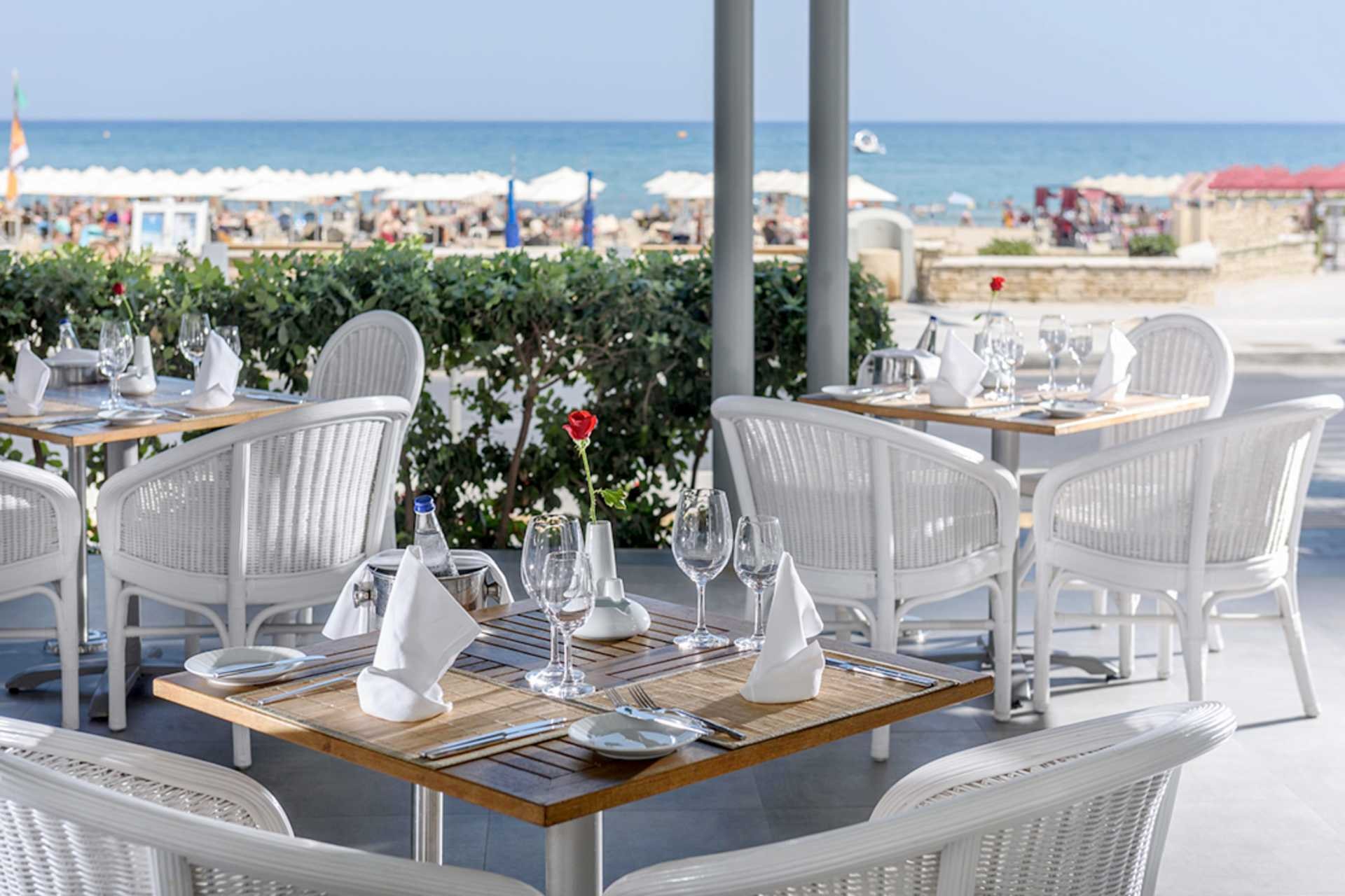Aquila Porto Rethymno er for jer, der drømmer om strandliv, smukt design og høj komfort. I skal bo lige ved havet og en Blå Flag-certificeret strand, hvor der er klart vand og feriestemning så langt øjet rækker. Skal det være ekstra luksus, kan I opgradere til Halvpension eller Ultra All Inclusive og nyde romantiske middage i stemningsfulde omgivelser. Løs mere om tilkøb på hotellets hjemmeside under 'Praktisk info'.