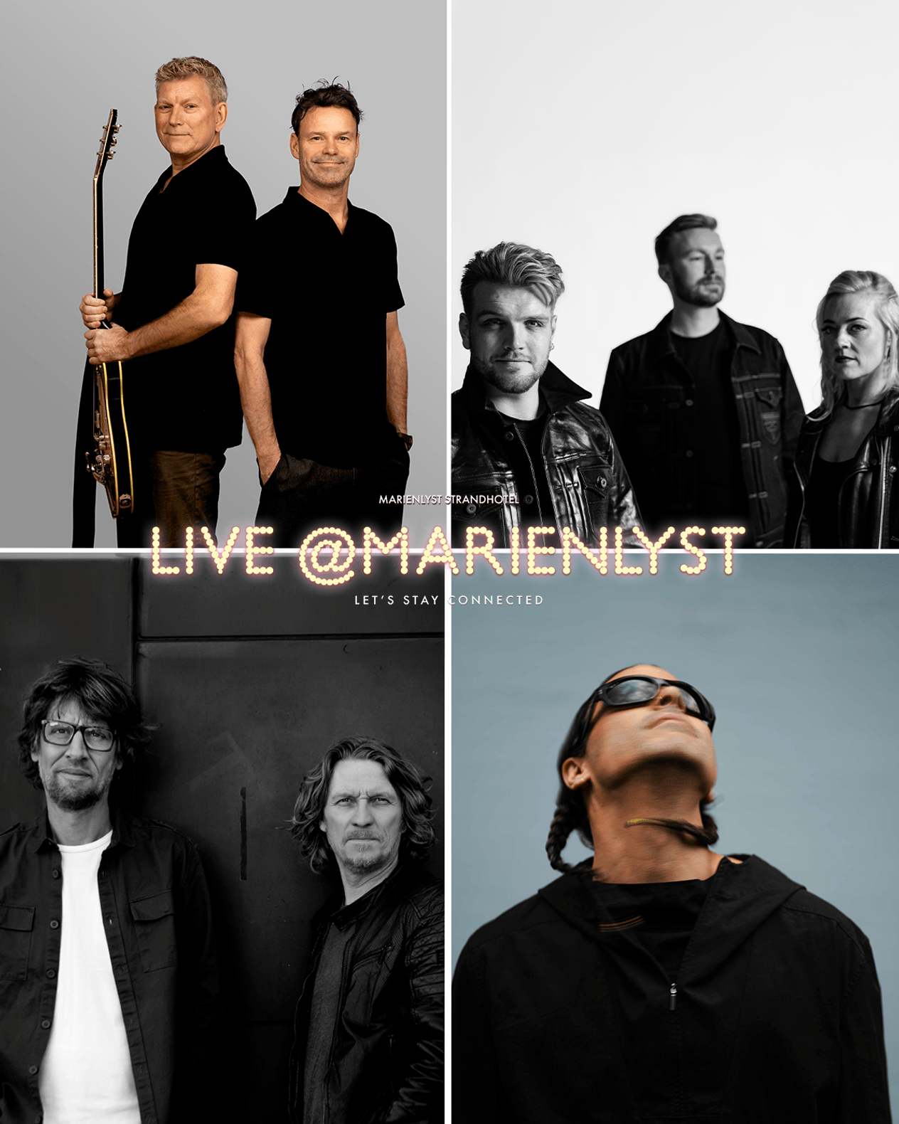 Glæd dig til enestående aftener på Marienlyst Strandhotel, hvor scenen fyldes med musik, humor og nærvær. Oplev nogle af Danmarks mest populære artister – fra Drew Sycamore og ByeBye Brenda til JUNG og Marie Key – eller grin med, når Nikolaj Stokholm indtager scenen med skarpe jokes og masser af energi.