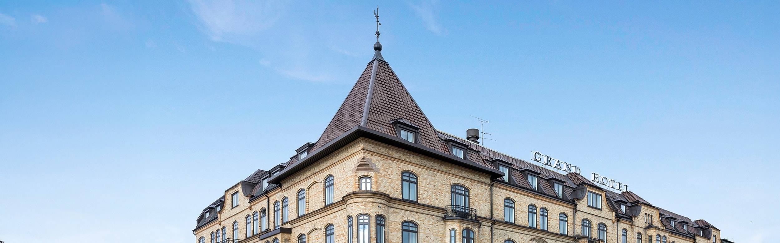 Det historiske Grand Hotel i Halmstad blev bygget i 1905 og står i dag som et symbol på en svunden tid. Det 4-stjernede hotel tilbyder en komplet oplevelse i Halmstad og har en skøn beliggenhed i den charmerende østlige forstad og kun en behagelig gåtur fra hjertet af byen. For jer, der ankommer med tog, er den indbydende indgang kun et stenkast væk. Grand Hotel i Halmstad leverer en tidløs hoteloplevelse, hvor fokus er på service i verdensklasse. Hotellets værelser er fordelt på fire smukke etager og alle værelser og badeværelser er indrettet i klassisk stil - og alle med hvert sit personlige touch.